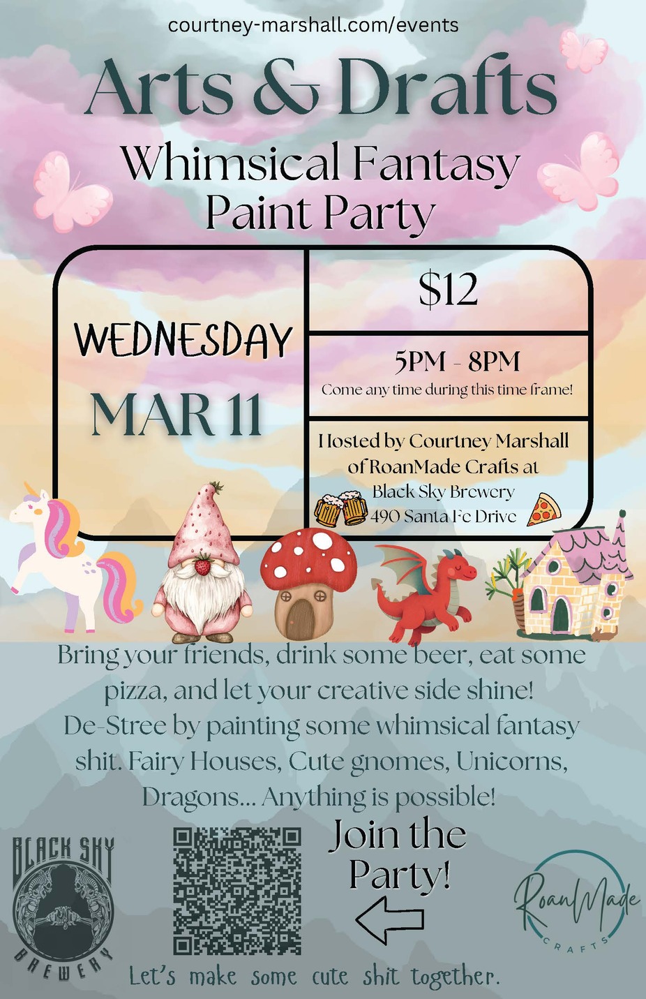 Join Courtney Marshall at Black Sky Brewery on March11th any time between 5pm-8pm to destress by making yoru own fantasy world!