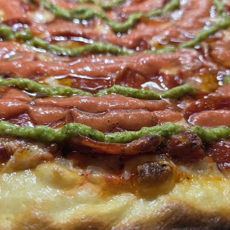 Double Pepperoni, Avocado Pesto, Vodka Marinara spirals and Habanero Agave drizzle